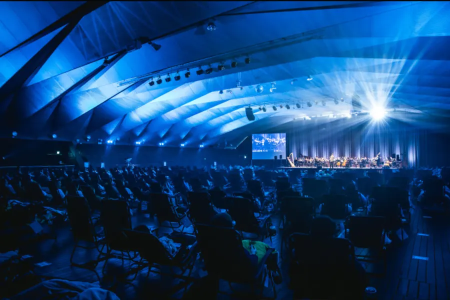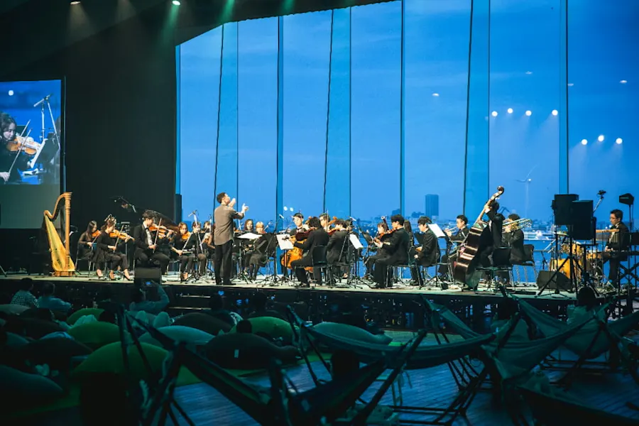 ビーズクッションに寝そべり、オーケストラの目の前で生演奏を浴びることができる、臨場感たっぷりのお席です。