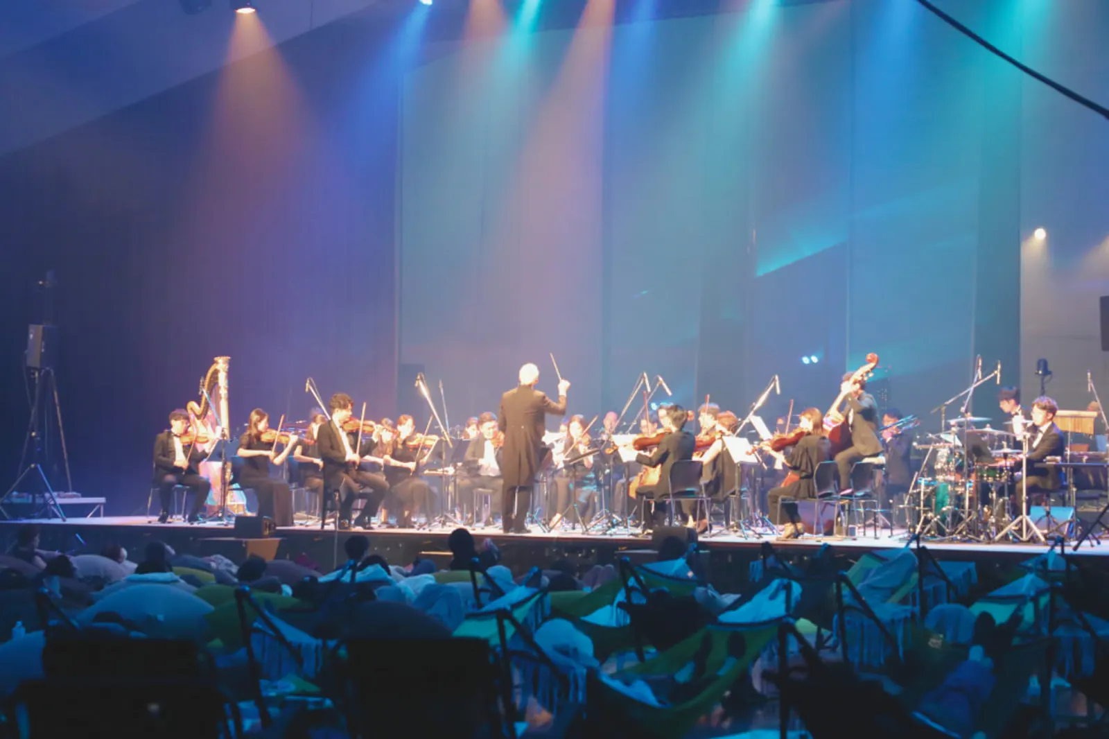 「リクライニングチェアでリラックスしたコンサートなので、途中で寝ちゃうかもと思っていたのですが、生のオーケストラの音に感動して、涙が出てきてしまいました。会場も、コンサートホールのように広くなく、楽器一つひとつの音がはっきりと聴こえました。素敵な音楽の時間をありがとうございました‼︎」