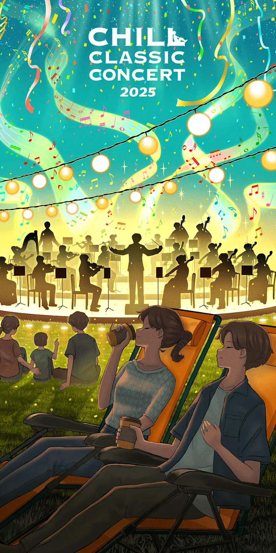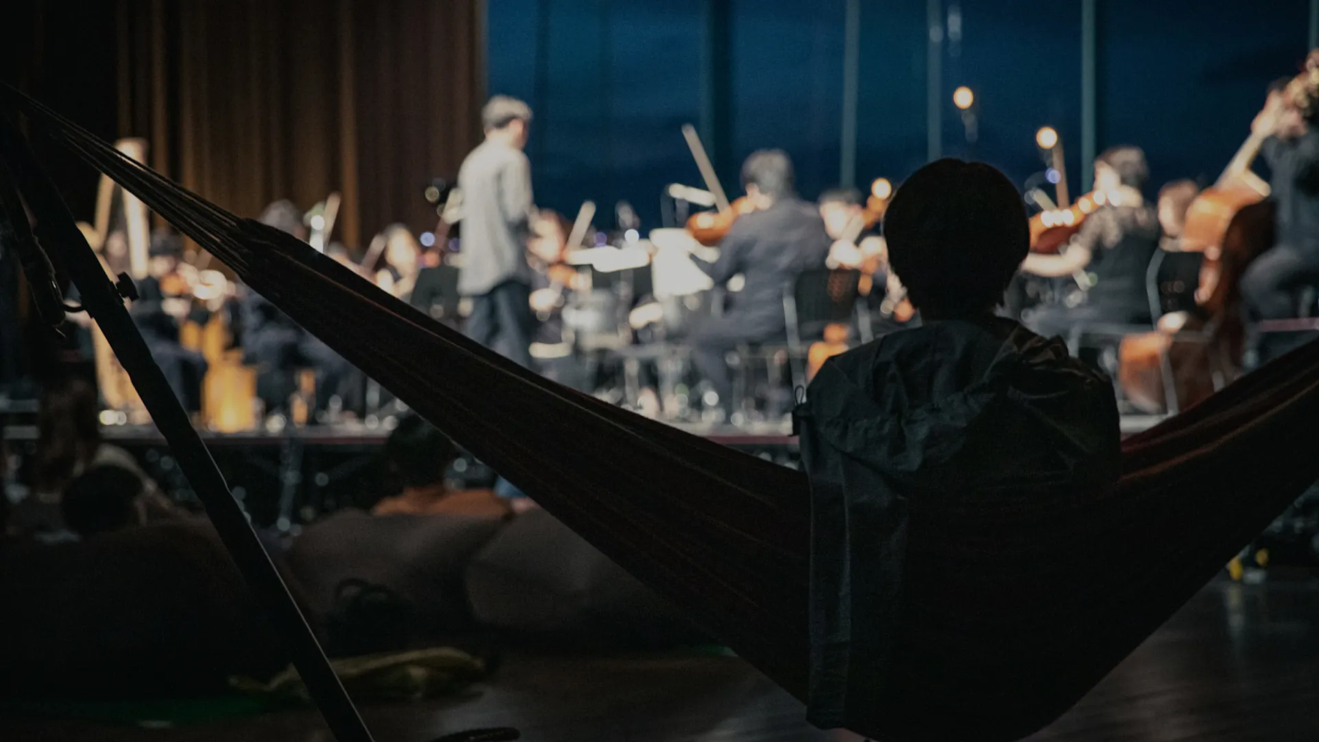 ビーズクッションに寝そべり、オーケストラの目の前で生演奏を浴びることができる、臨場感たっぷりのお席です。