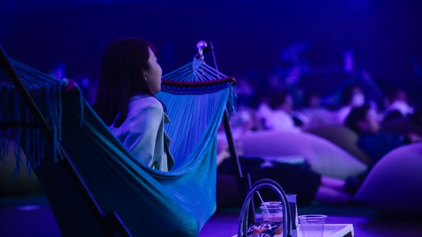 ハンモックに包まれ、自分だけの世界に入って演奏を楽しめる「CHILL」を体感できるお席です。
